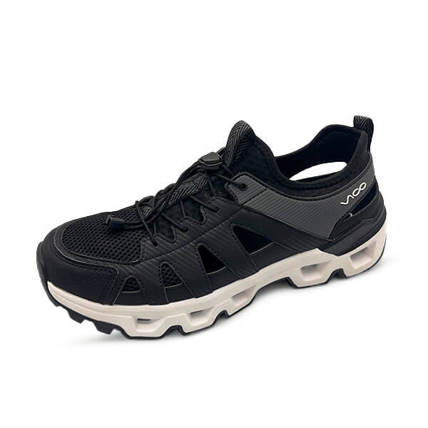 جنس رویه :ترکیب فوم لمینت شده و پارچه توری بسیار مقاوم . ضد آب کامل و رویه جورابی یک تکه و بصورت اسان بند برای تنظیم صندل از طرفین به پای شما