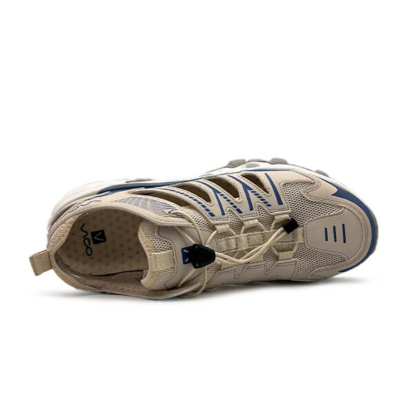 - جنس رویه :ترکیب فوم لمینت شده و پارچه توری بسیار مقاوم . ضد آب کامل و رویه جورابی یک تکه و بصورت اسان بند برای تنظیم صندل از طرفین به پای شما