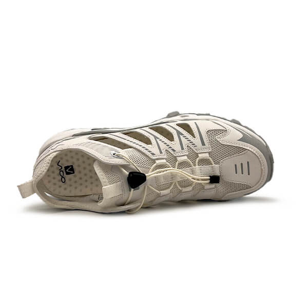- جنس رویه :ترکیب فوم لمینت شده و پارچه توری بسیار مقاوم . ضد آب کامل و رویه جورابی یک تکه و بصورت اسان بند برای تنظیم صندل از طرفین به پای شما