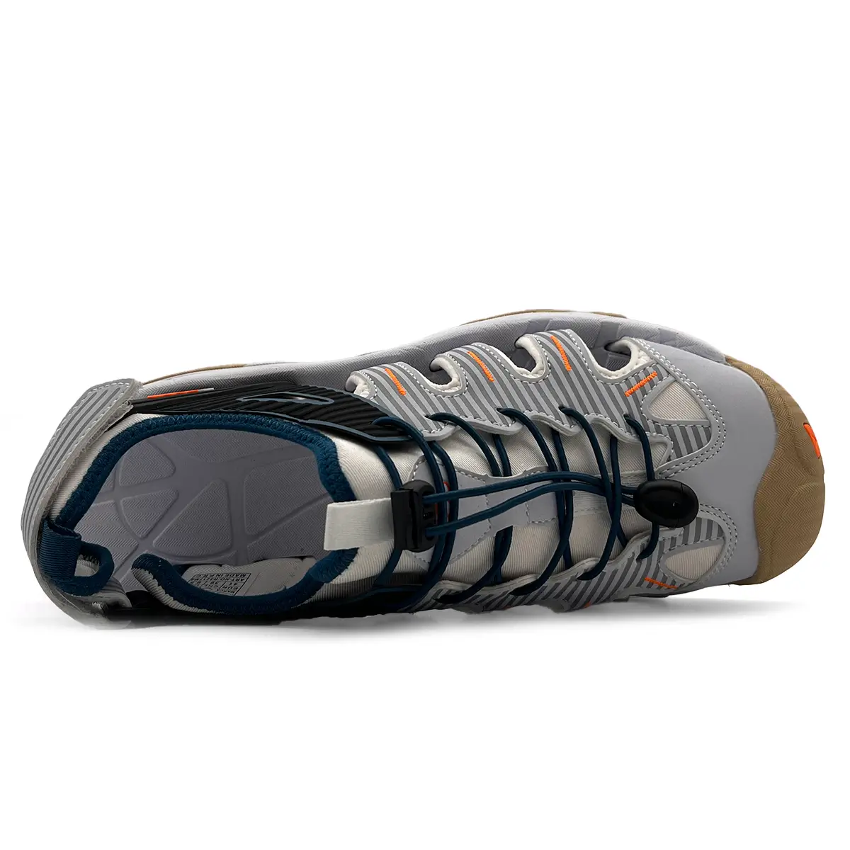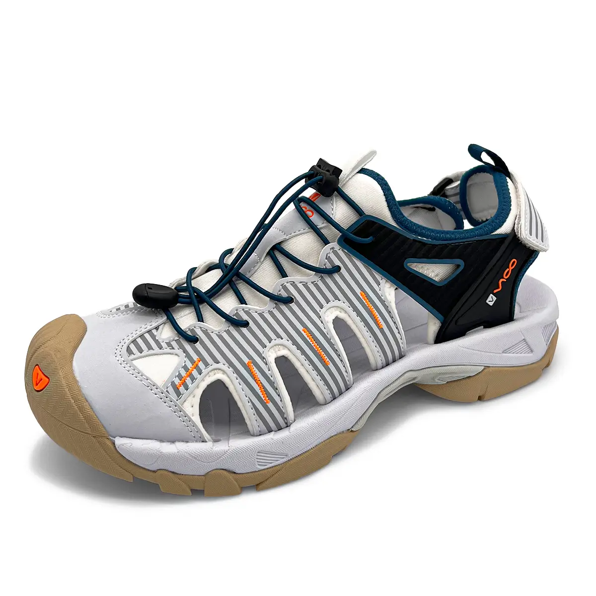 - جنس و قابلیت زیره : زیره ترکینگ و دارای آج های ضدسایش و ضد لغزش در سطوح مختلف که برای شما امکان پیاده روی در سه موقعیت هم روزمرگی شهری و هم طبیعتگردی/دره نوردی و آبنوردی را فراهم میکند. قالب زیره هم طوری طراحی شده است که کاملا گودی پای شما را پر میکند و از بروز زانو درد و کمر درد جلوگیری میکند. در طرفین زیره هم دریچه های تخلیه ی آب طراحی شده است که در زمان آبنوردی آبی که از کفی عبور کرده است توسط این دریچه ها به بیرون تخلیه شود و آبی در صندل شما یاقی نماند